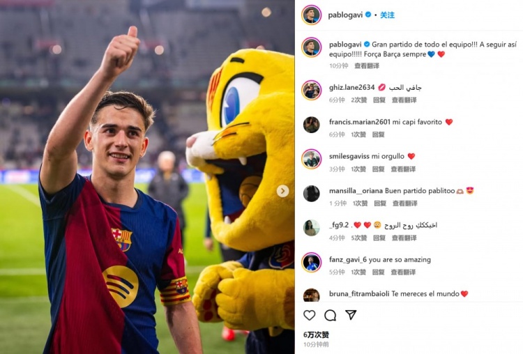 - 作為隊(duì)長(zhǎng)首發(fā)!20歲加維社媒:全隊(duì)踢出精彩比賽,巴薩繼續(xù)加油!