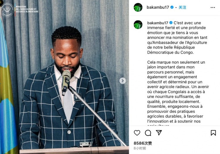 巴坎布曬就任民主剛果農(nóng)業(yè)大使照:讓我們共同助力農(nóng)業(yè)可持續(xù)發(fā)展