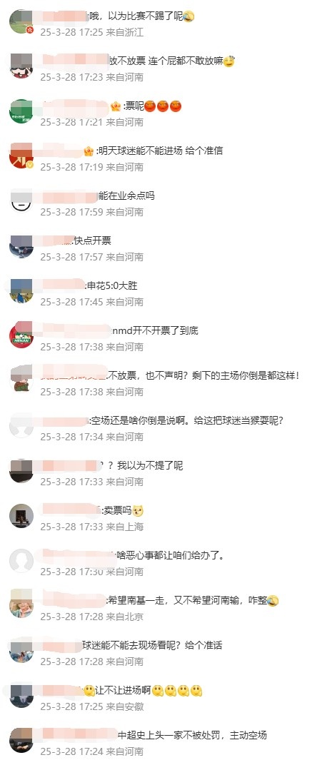 3月28日訊 本周六晚間,河南隊將在主場迎戰(zhàn)上海申花,不過這場比賽的門票遲遲沒有銷售,球隊也沒有對此做出解釋。賽前一天,河南隊球迷越發(fā)不滿。在球隊官博評論區(qū),球迷們發(fā)出了很多的質(zhì)問。