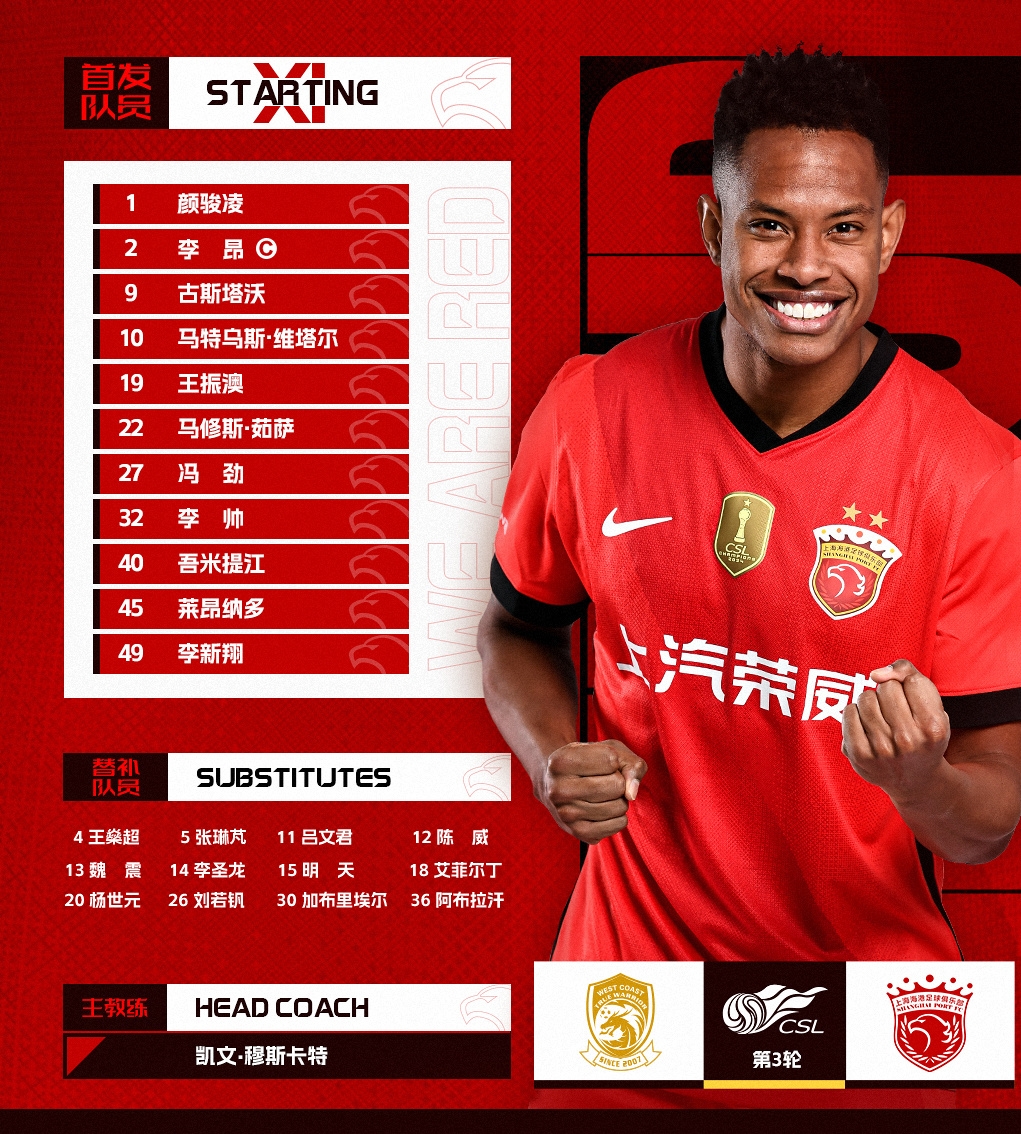 - 中超聯(lián)賽第3輪,青島西海岸vs上海海港,今日首發(fā)名單