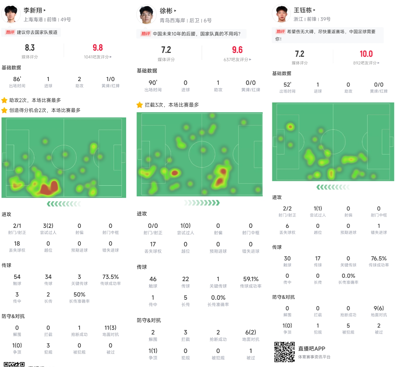 上海海港客場(chǎng)3-3戰(zhàn)平青島西海岸的比賽,19歲的海港小將李新翔首發(fā)迎來中超首秀,全場(chǎng)比賽1射2傳發(fā)揮亮眼,幫助海港搶下一分。青島西海岸方面,20歲的后腰徐彬也表現(xiàn)出色,為阿齊茲送出一次助攻。