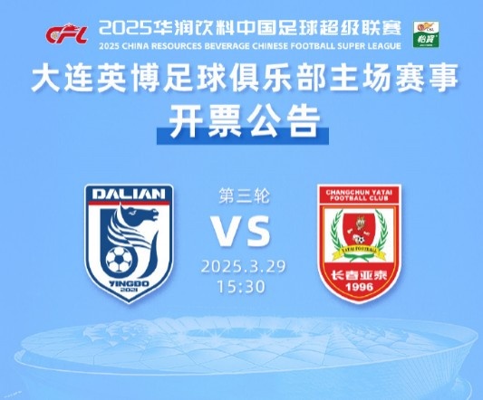 3月29日訊 今天下午大連英博主場對陣長春亞泰的中超第三輪比賽,將于今天上午10點再次開票。