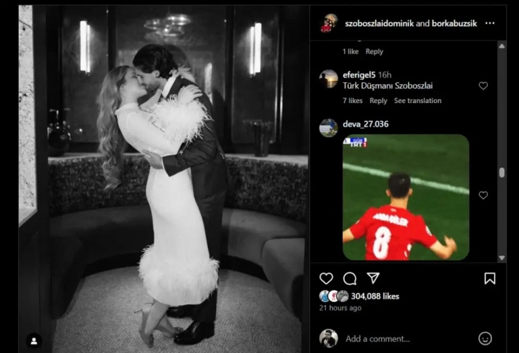 現(xiàn)在這種行為還未結(jié)束,索博昨天曬出自己的結(jié)婚照,評(píng)論區(qū)仍然有很多球迷在刷居勒爾的照片,不少支持索博的球迷則表示:“土耳其愛哭鬼又來了?!?/p>