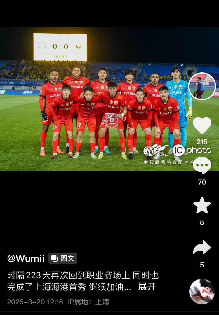 - 海港首秀!吾米提江更新社媒,紀念時隔223天后重返賽場