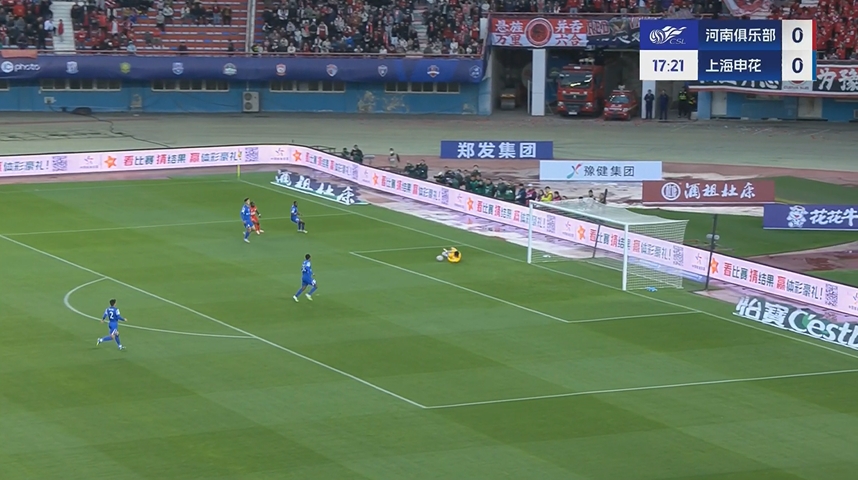 - 半場-河南1-0申花 邁達納頭球破門吳曦門線解圍高天意定位球中框