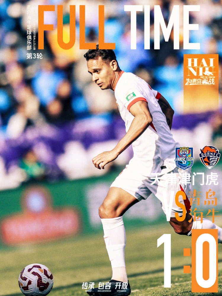 全場比賽結(jié)束,青島海??蛨?-1不敵天津津門虎。