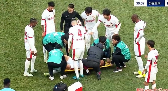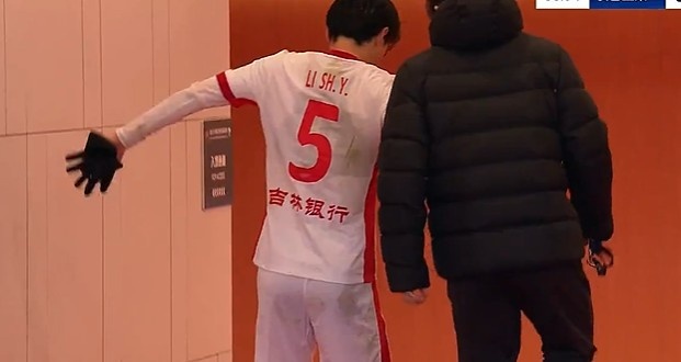 第38分鐘,譚龍拼搶中受傷倒地被擔(dān)架抬出場外,同時(shí)李申圓受傷堅(jiān)持不住回更衣室?!?/p>