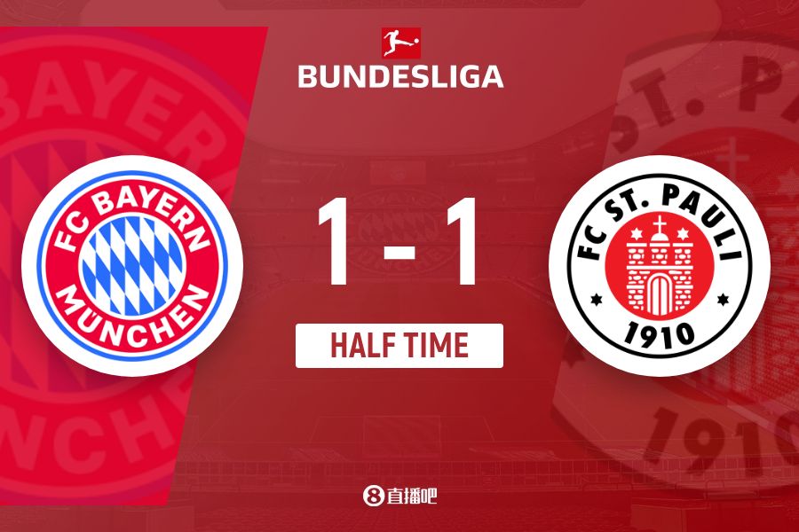 - 拜仁半場(chǎng)1-1圣保利數(shù)據(jù):射門12-5,射正5-2,控球率69%-31%