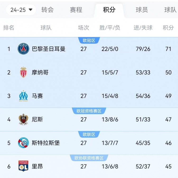 不過如果巴黎輸球而摩納哥贏球,雙方仍將相差18分,盡管凈勝球優(yōu)勢巨大,但在還剩6輪情況下仍然理論上無法提前奪冠。