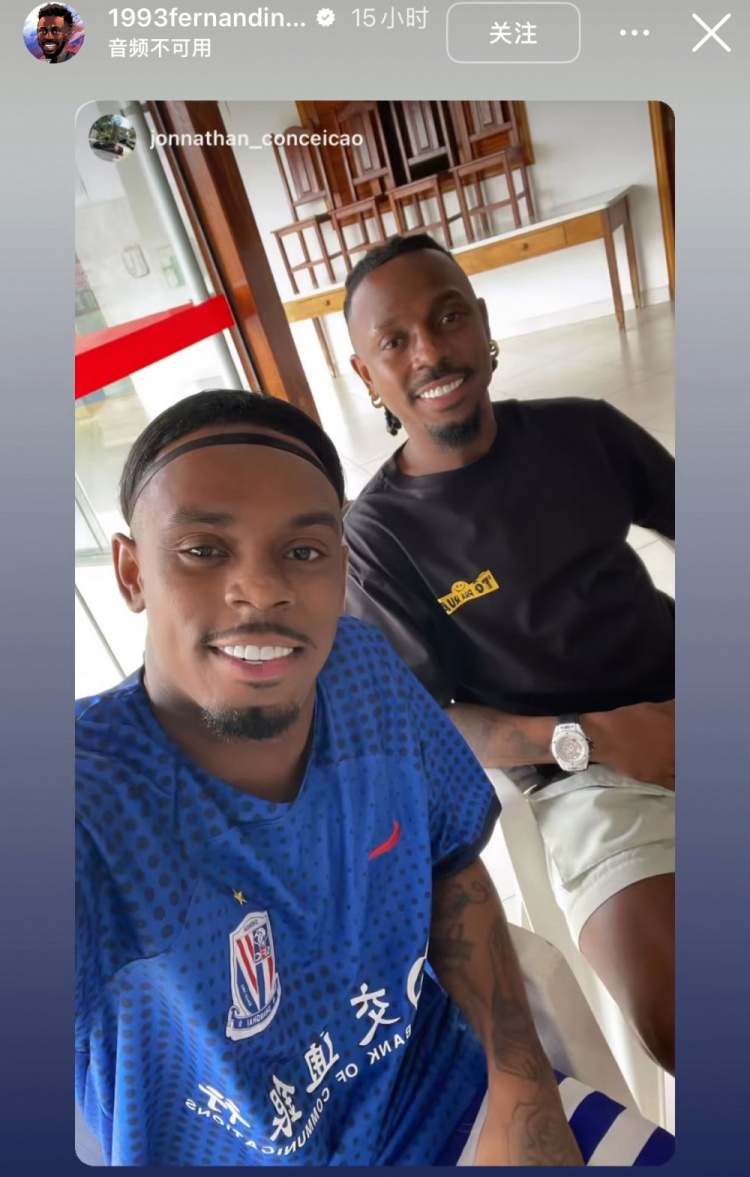 費(fèi)南多社媒曬出和身穿申花球衣友人合照,目前他的下家仍未確定
