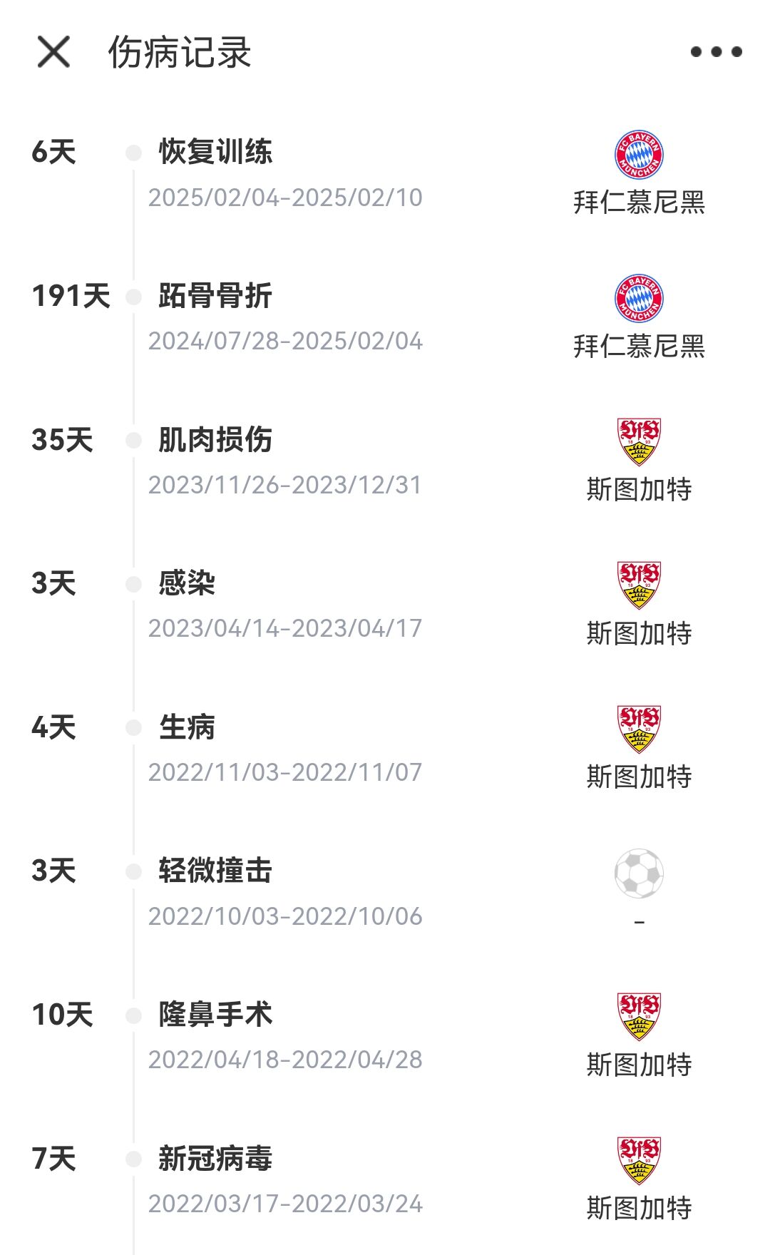 - 鐵人→脆皮!伊藤洋輝在斯圖3年主力僅傷缺8場(chǎng) 來(lái)拜仁一賽季踢8場(chǎng)
