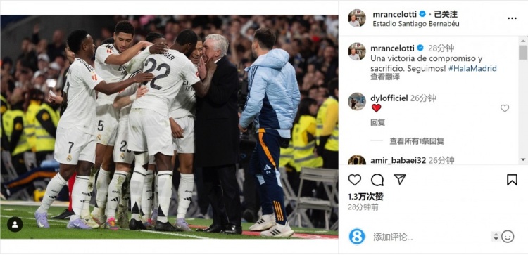 - 安切洛蒂社媒:這是奉獻(xiàn)和犧牲精神帶來(lái)的勝利,我們繼續(xù)前進(jìn)!