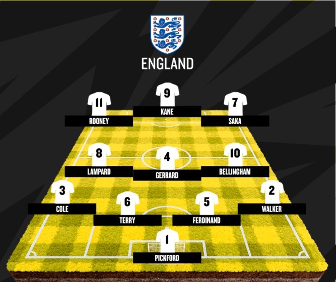 以下為阿邦拉霍選出的英格蘭隊(duì)史最佳陣: