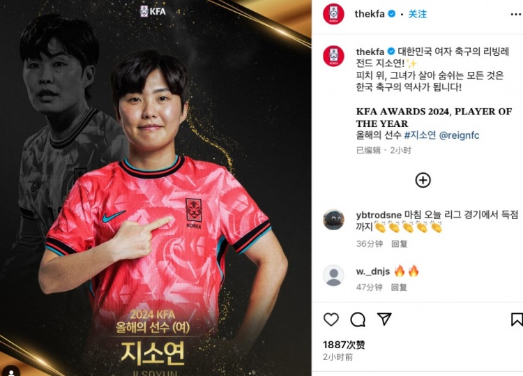 官方:34歲韓國女足名將池笑然當選韓足協(xié)2024年度最佳女足球員