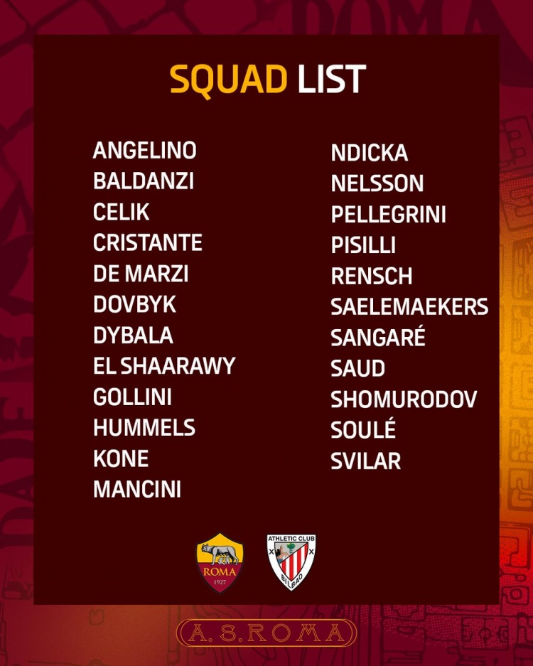 3月5日訊 北京時間3月7日凌晨4時,歐聯(lián)杯1/8決賽首回合羅馬主場對陣畢爾巴鄂競技,羅馬公布此役大名單,迪巴拉、佩萊格里尼、胡梅爾斯等球員在列。