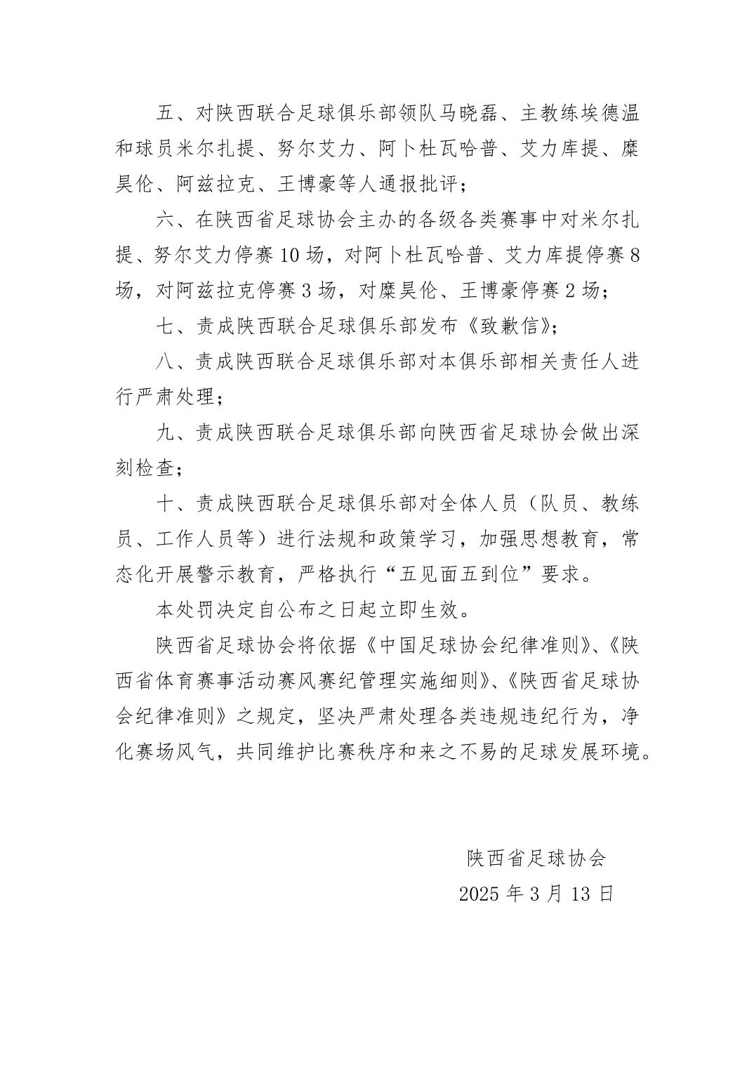 4、對陜西聯(lián)合足球俱樂部通報批評。